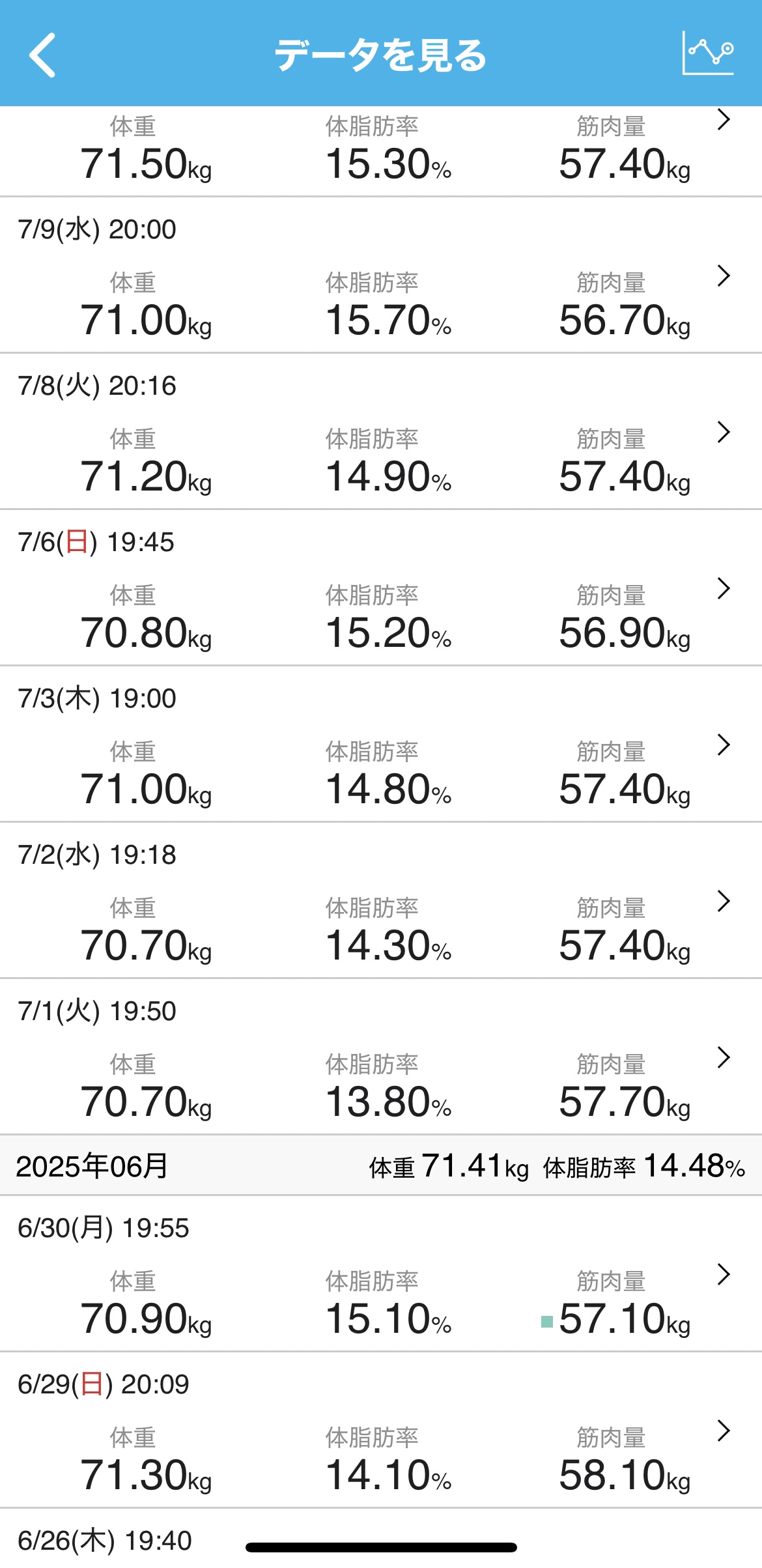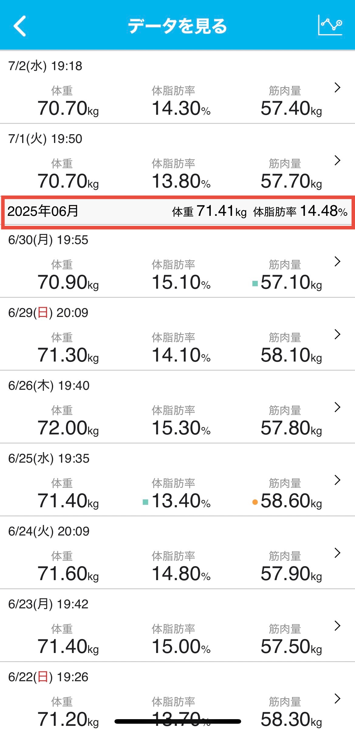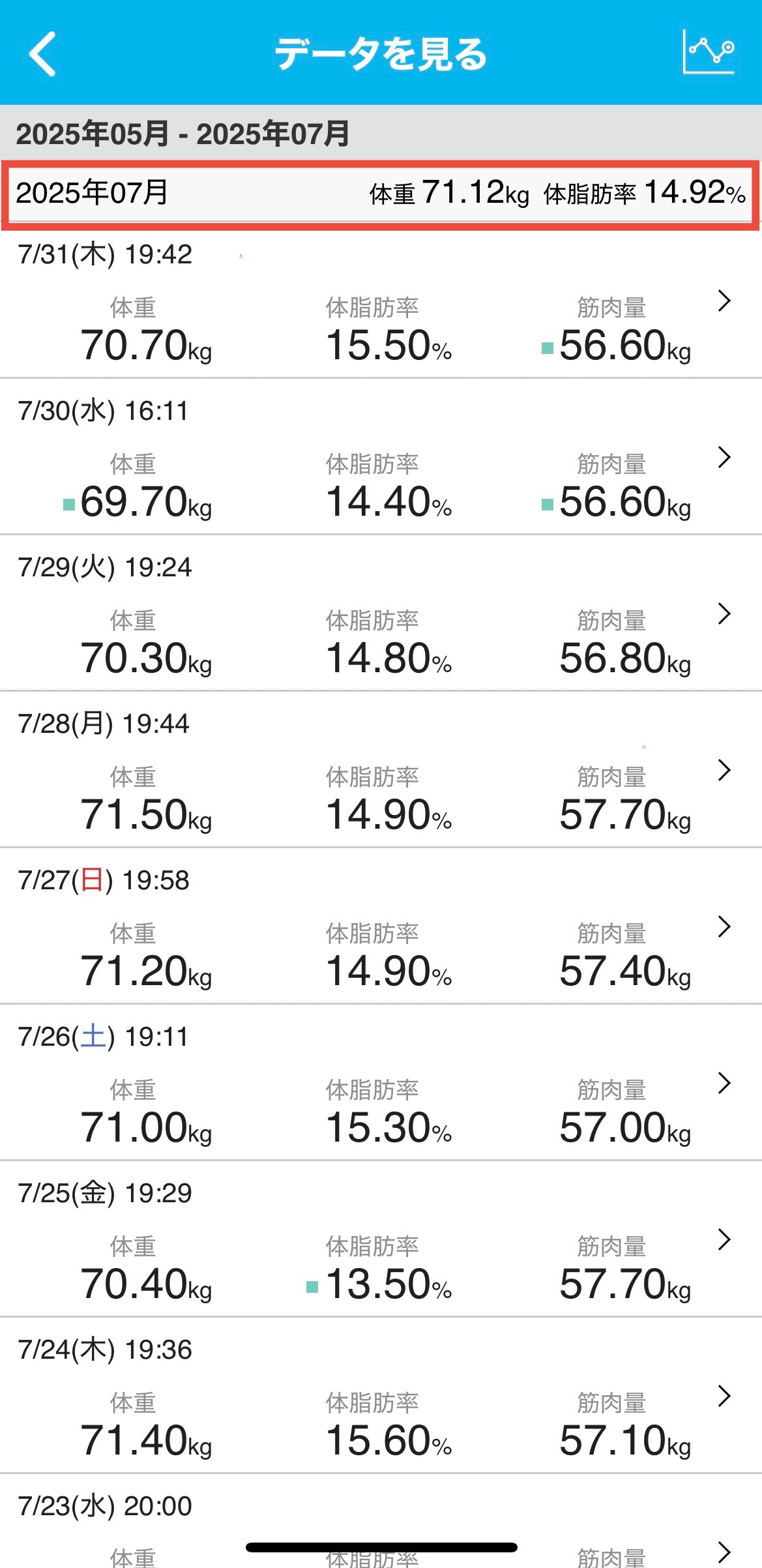 毎日測定していると、あっという間にデータは蓄積していきますし、体重を含めて日々の積み重ねを感じることができます。